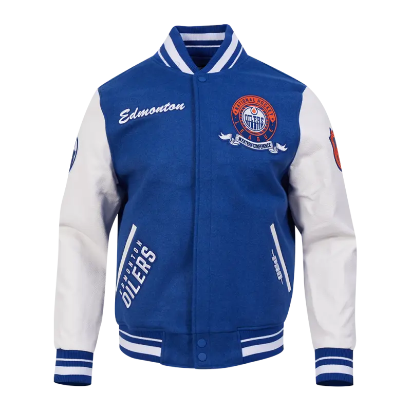 NHL EDMONTON OILERS CLASSIC WOOL MEN’S VARSITY JACKET (DODGER BLUE\/WHITE)
