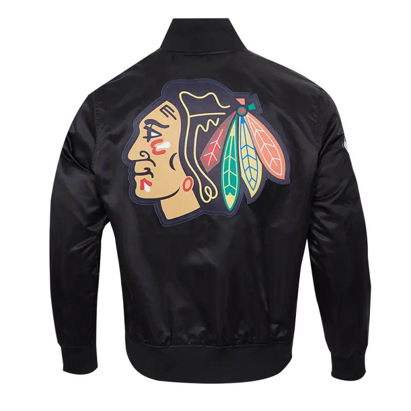 NHL CHICAGO BLACKHAWKS CLASSIC MEN’S SATIN JACKET (BLACK)